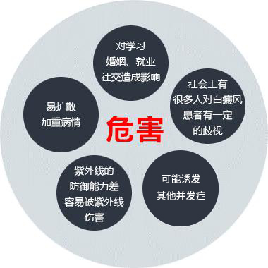 在现今这个社会,人们对外在美的要求是越来越高,甚至远远超过于内在美,而白癜风的发病无疑对患者的外在美造成损害。而在社会中也有部分人,他们对白癜风患者具有一定的歧视现在。当青少年身体部位出现白斑的时候,必然会受到社会中一些人的歧视,那么,这样就会影响到青少年患者的心理,给患者的心理会造成一定的影响,甚至会因此出现自暴自弃、产生心理扭曲等等,这些都是非常不好的现象。
